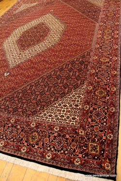Country of Origin: Iran, very tightly woven, wet weave, double warp and double weft, wool pile and cotton foundation, Kurdish wool, called"Iron rugs of Persia"
